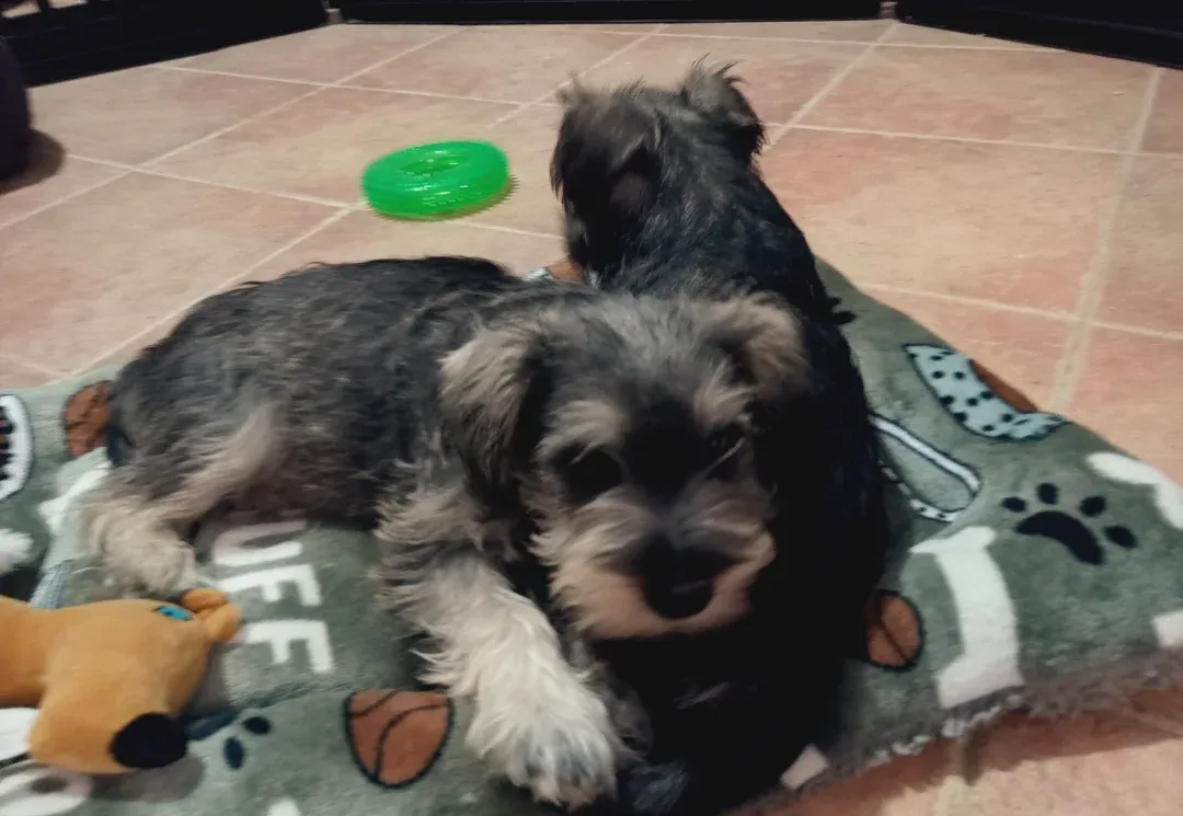 No somos revendedores, nuestros cachorros nacen en casa. Contáctanos en el 626879910 Camada de schnauzer mini, sal y pimienta, para entregar a partir del 15 de agosto. Padres con un excelente pedigree